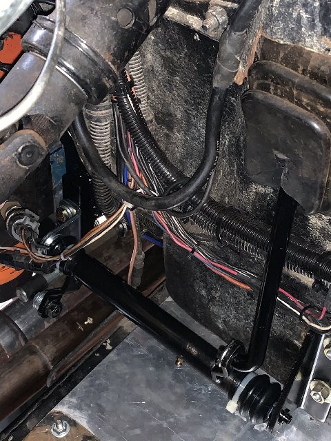 I bought this Jeep a few years ago, as a project in process. My build thread can be found here, for anyone who might be interested. When I got the Jeep, the driveline was already in place. I mostly worked on wiring and miscellaneous mechanical details. The clutch works OK, but the linkage is a bit suspect. There was a spring attached to the clutch fork, but it was installed in the wrong direction, actually pulling the bearing into contact with the pressure plate. This likely contributed to the bearing getting worn out. I reversed the spring, to try to get the bearing away from the pressure plate when not being used, but I believe the damage had already been done, as it sound 'dry' when engaging. The clutch fork boot is all ripped up too. The linkage is a bit sloppy, so I might decide to upgrade it with rod Heim joints, etc. I'm also considering changing over to a hydraulic actuation system, and would be interested in hearing your thoughts on that idea.
