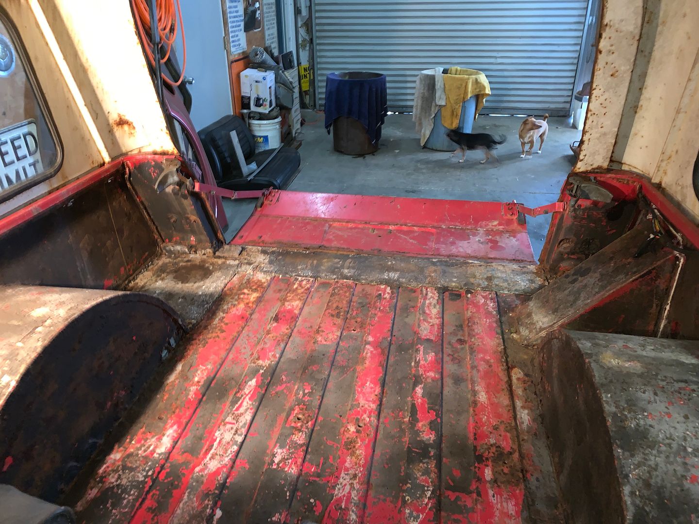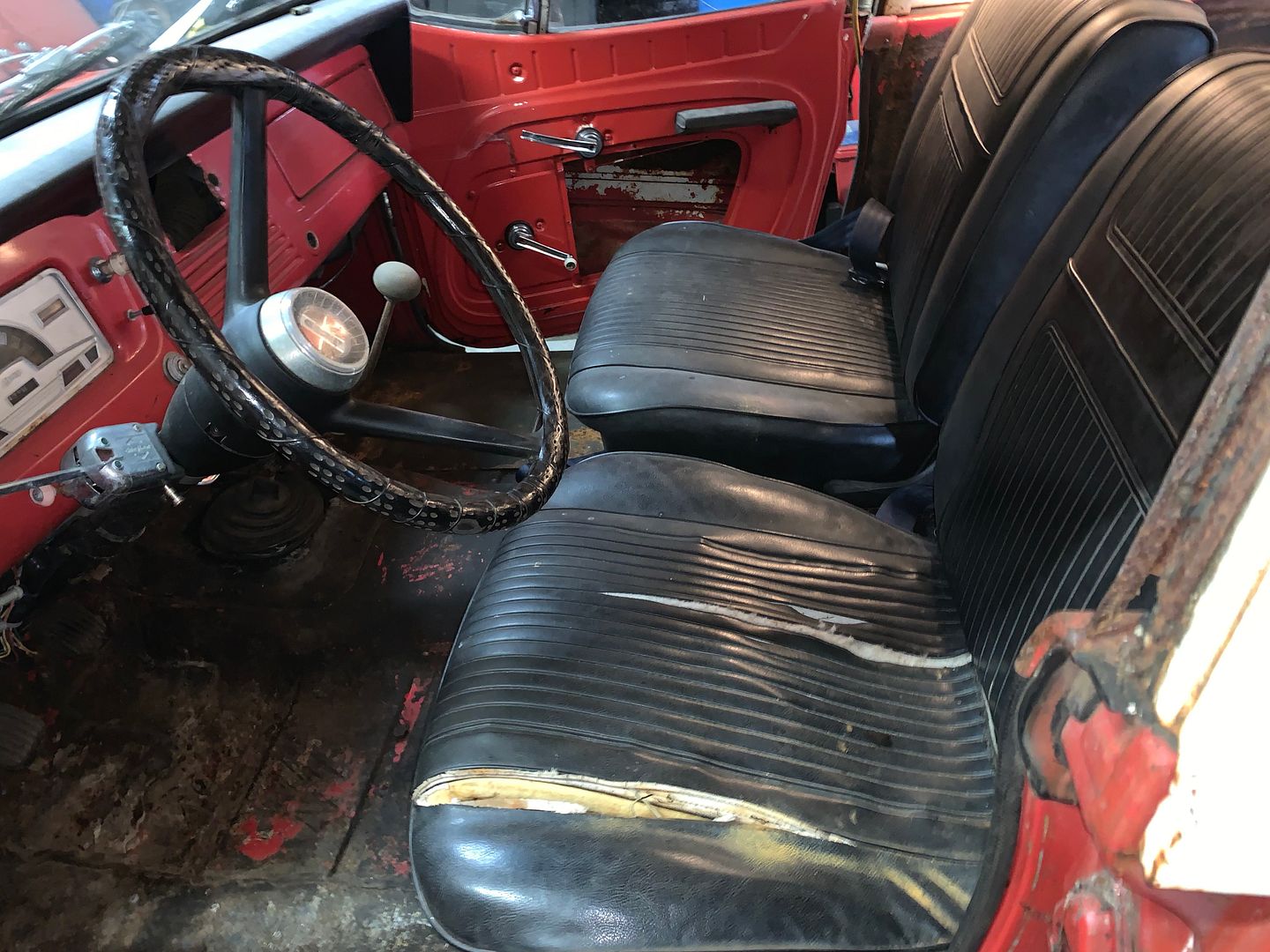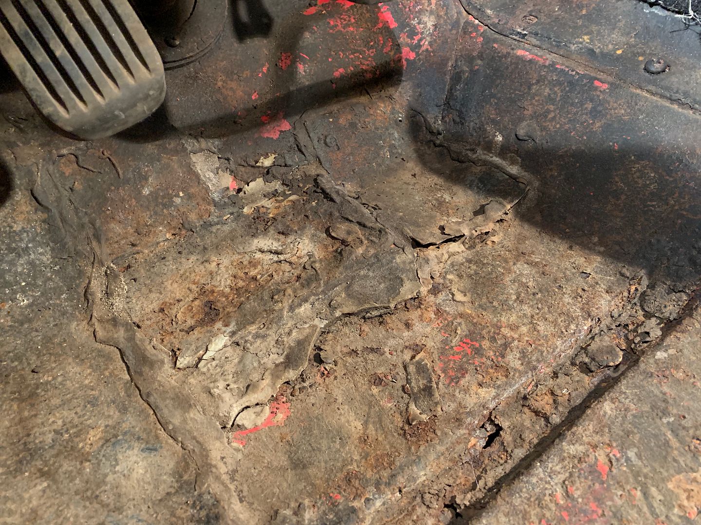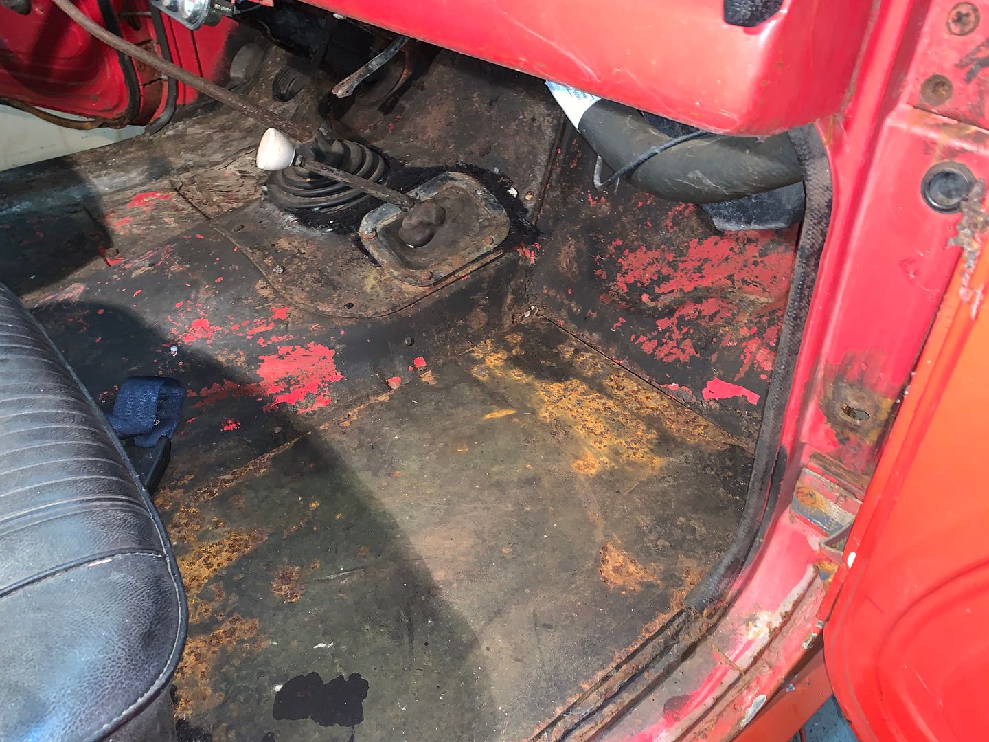 This is the driver side floor board. As you can see, I will have some work cut out for me, literally, LOL. I plan on eventually getting that stuff out and maybe do some sort of a road sign floor or something. Not sure yet.