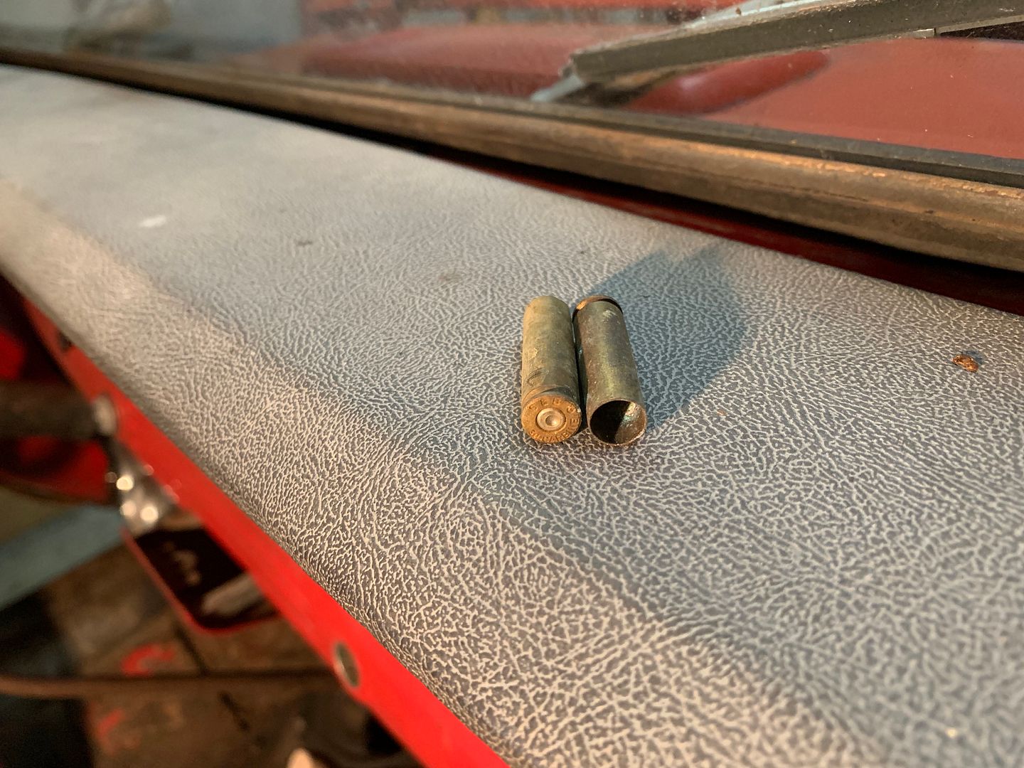 While blowing it out, I found these. Thought they were cigarette butts at first, but then picked them up and saw what they were. They will stay in the Jeep from here on out. It's just something I do when I get a new to me car. I clean it out and always keep something I find with the car. My Ford F100 has a pull tab I found in it that went to an old beer can. My bus has a pin I found in it, and so on. I will probably end up drilling a couple holes in the shells and hanging them from the mirror.